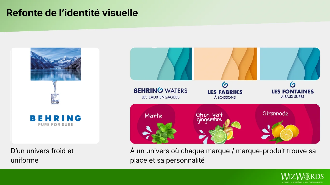 Nouvelle gouvernance, nouveaux produits, nouveaux enjeux business, la réalité de l’offre de Behring Waters a transformé son positionnement, et la marque ne correspond plus à son territoire.